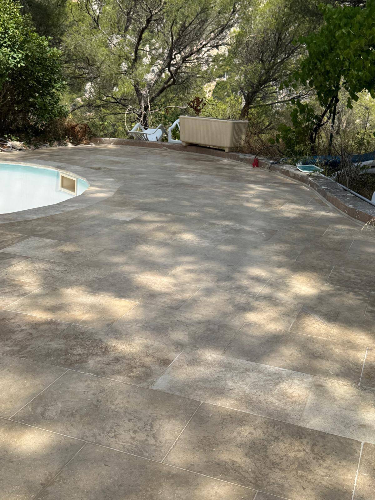 À Gémenos, nous avons repensé entièrement un espace extérieur : rénovation de la piscine, création de deux terrasses et harmonisation de l’ensemble pour un rendu moderne, accueillant et plein de charme.